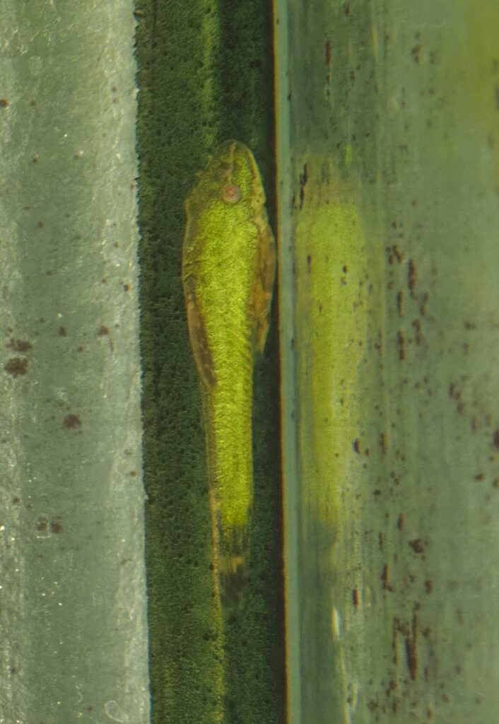 全身緑色に光る珍種のオトシンです。