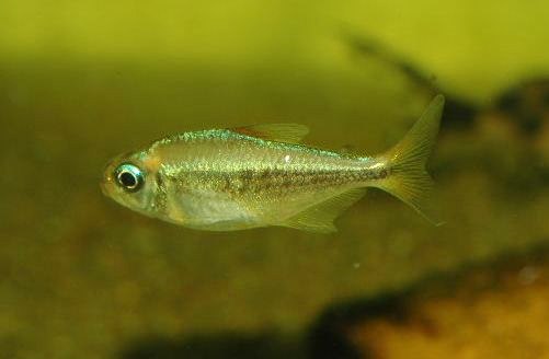 体はブルーグリーンに光り、体側に不規則な黒線が入ります。