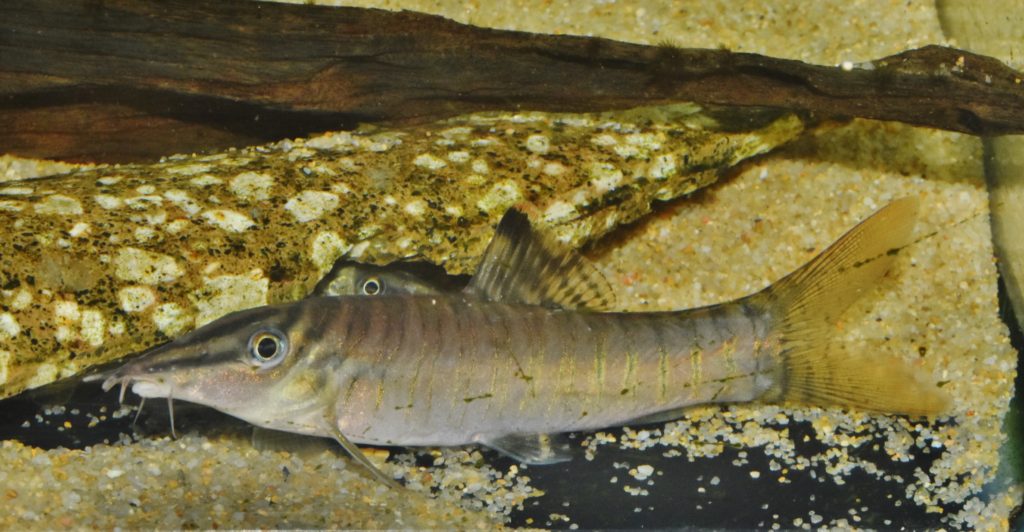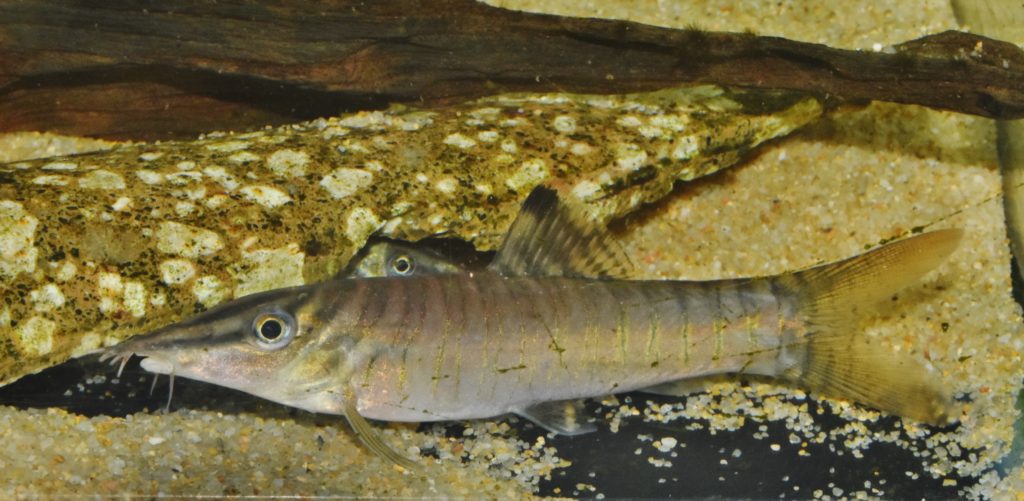 このような複雑な色彩の縞模様を持つ種は、本種以外にはいないため、